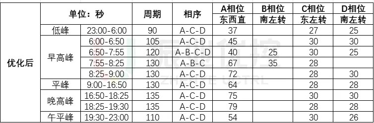 3.精细化信控方案,提高绿灯利用率,缓解拥堵:南进口(学校进出口)采用二次放行及精细化时段方案,消除进出口红灯等待时间长且进出车辆相互阻挡、绿灯时间进出车辆相互阻挡导致通行车辆少的恶性循环,提高绿灯利用率,降低行车延误。