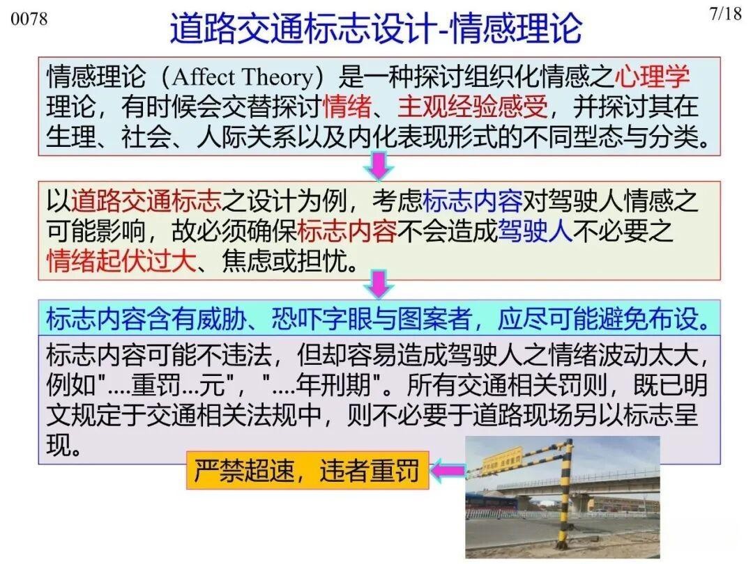 5)情感理论(Affect Theory):考虑标志内容对驾驶人情感的影响,避免引发不必要的情绪起伏、焦虑或担忧;