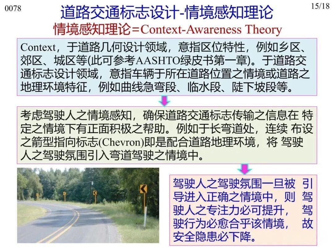 13)情境感知理论(Context-Awareness Theory):设计应考虑驾驶人的情境感知,确保标志传输的信息在特定情境下发挥正面引导的作用;