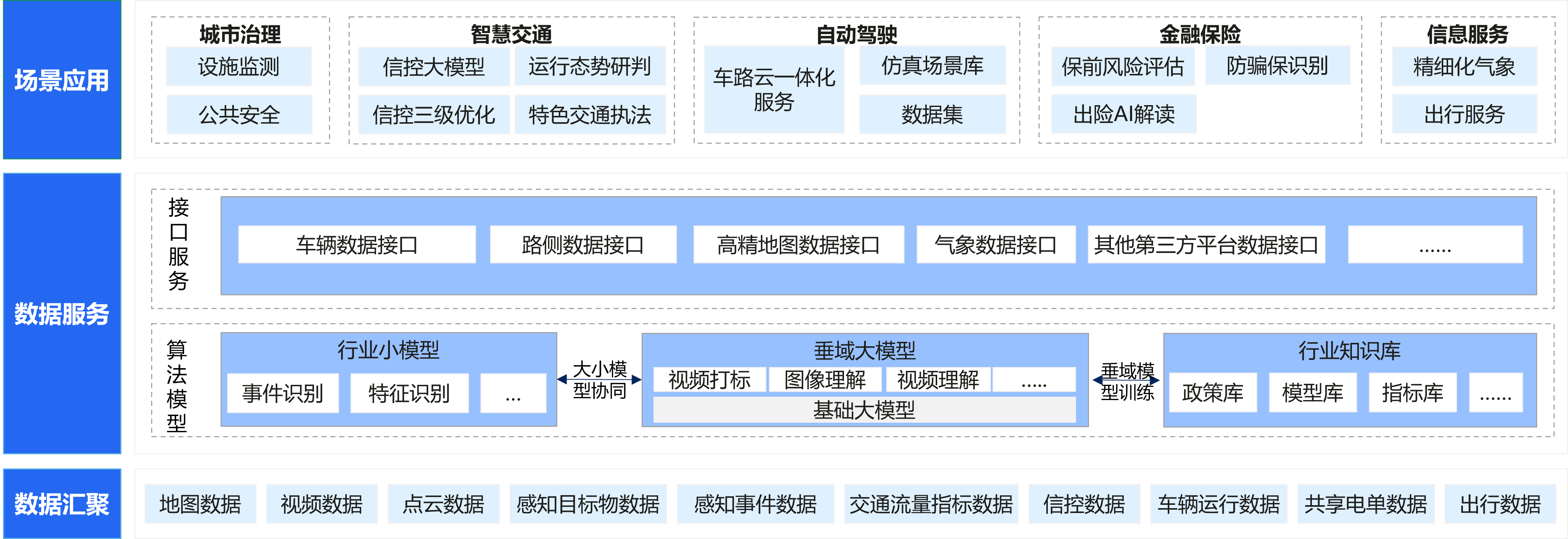 作为中国最早启动建设的车路云一体化高级别自动驾驶示范区的运营平台公司,北京车网通过充分联结智能路侧终端感知能力与云端高算力优势,持续汇聚智慧城市基础设施和智能网联汽车(以下简称“双智”)相关多源、实时的高质量视觉和文本数据,在北京初步形成了“智能化基础设施部署-多源数据融合-‘双智’细分场景应用”的发展闭环。