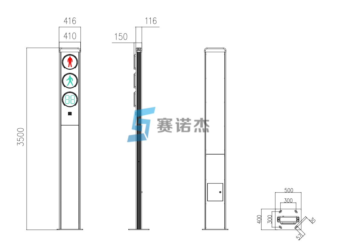 | RX300-3-SW-2RA(T3-YT35) | 3.5m一体化人行横道信号灯,上联红色静立人行,中间绿色静立人行,下联独立式倒计时,支持通讯、触发、学习三种工作模式 |